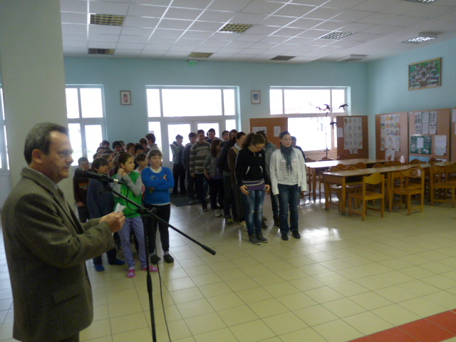 2012. 04.04. Reggeli áhítat a felsősök között a csorvási iskolában...