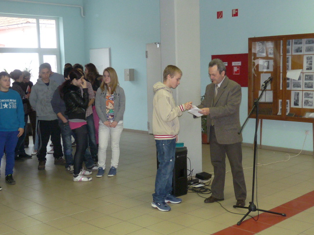 2012. 04.04. Reggeli áhítat a felsősök között a csorvási iskolában...