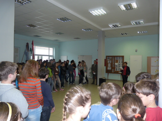 2012. 04.04. Reggeli áhítat a felsősök között a csorvási iskolában...